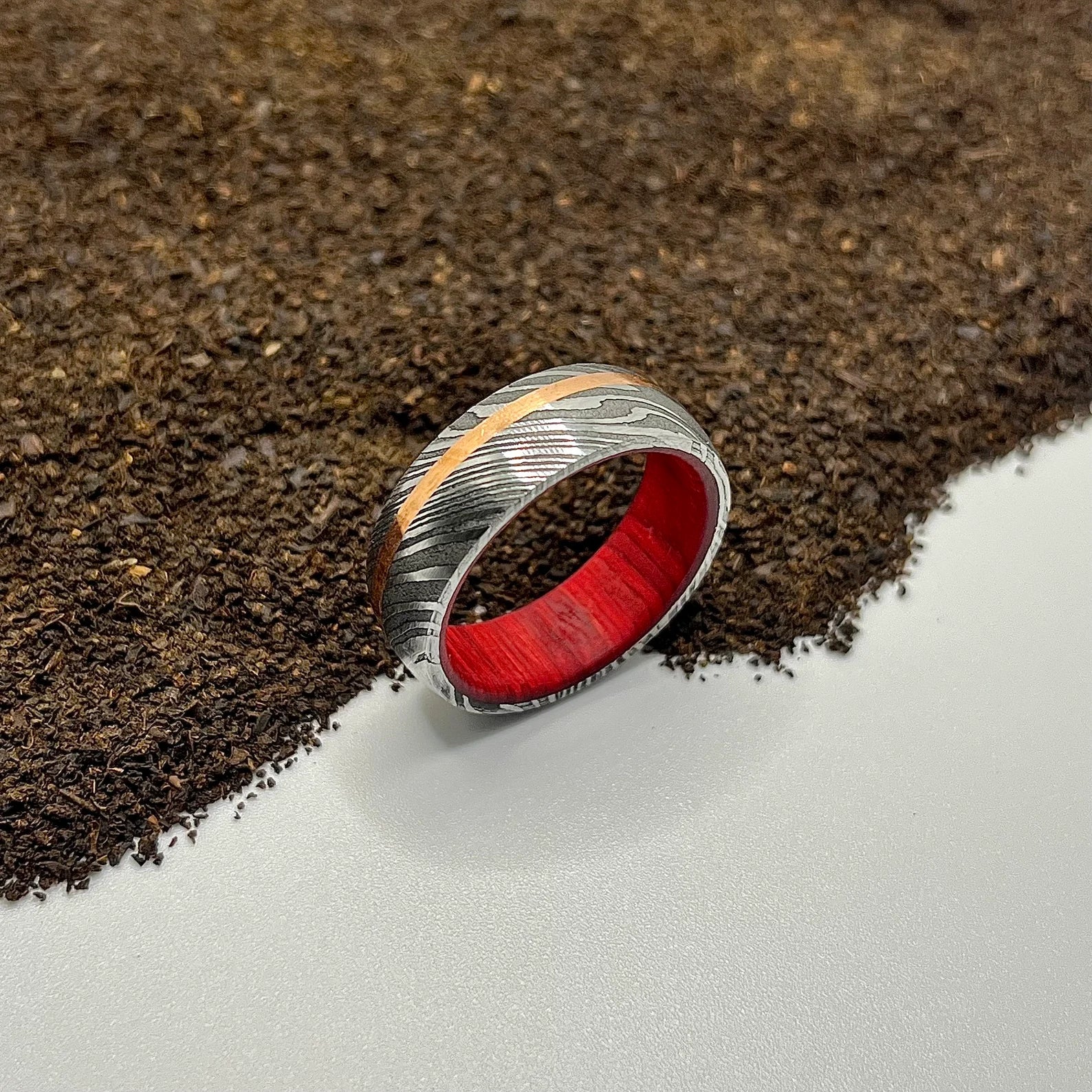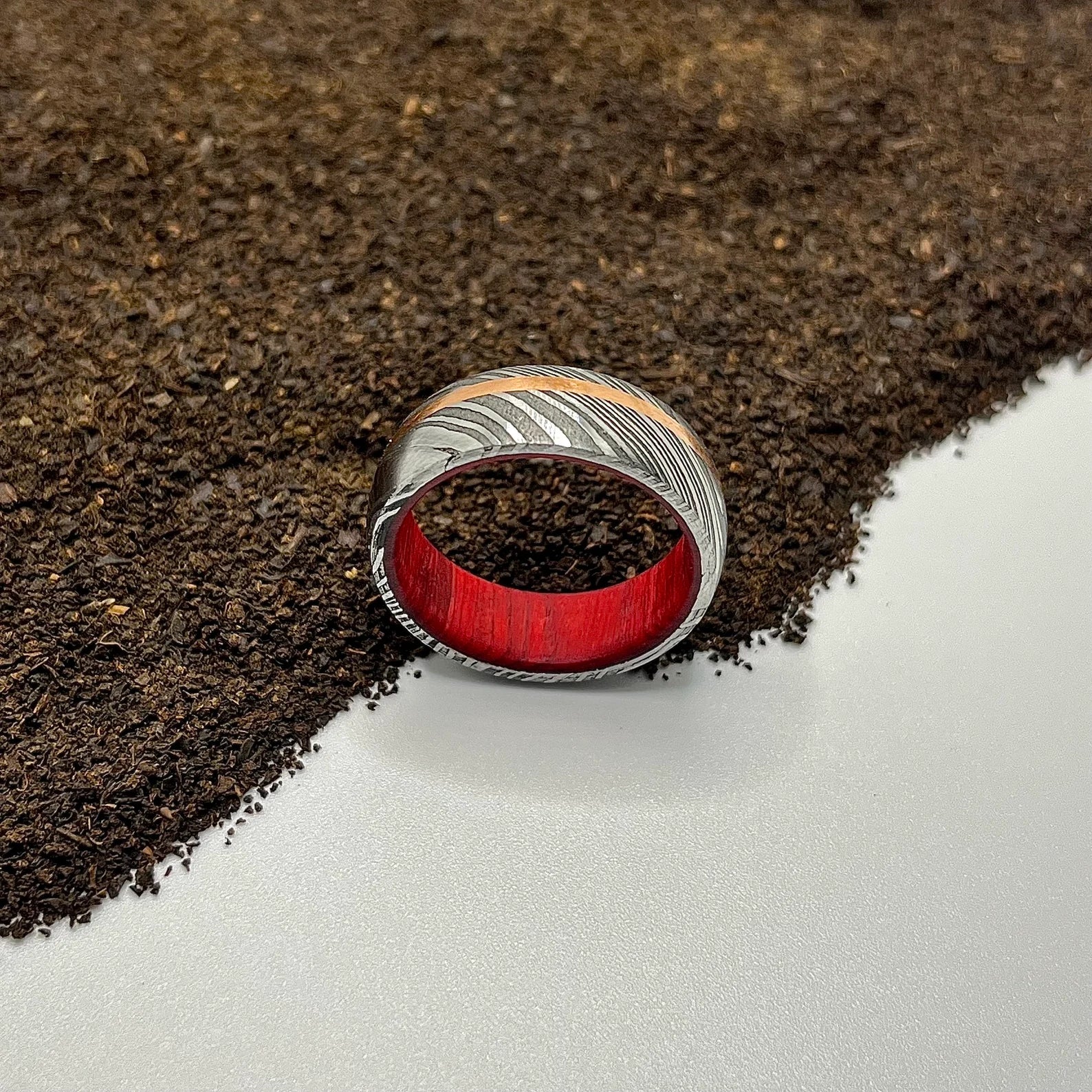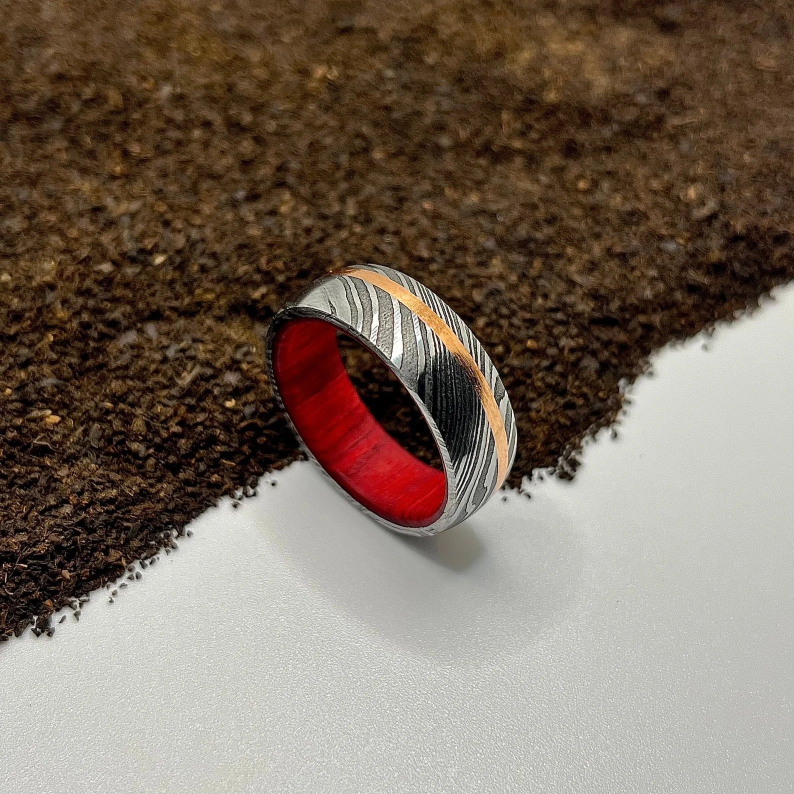Titanium Ring with Damascus and Lined with Black Copper Inlay - RustyStudioUSA