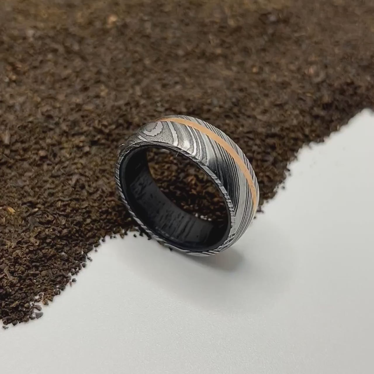 Viking Damascus Steel Ring Lined with Wood Sleeve - RustyStudioUSA