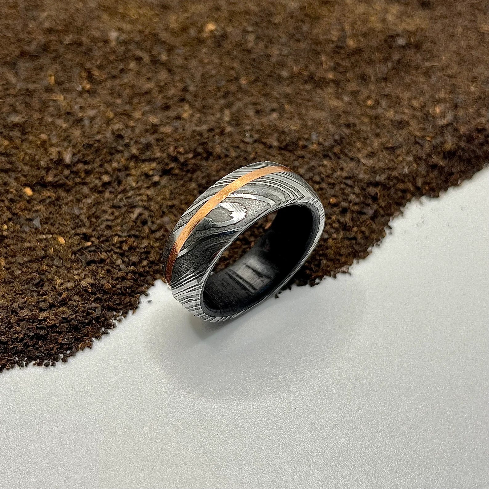 Please be aware that due to the handcrafted nature of Damascus rings, variations in colour, shade, and pattern can be slightly different. Each ring is meticulously made to order, resulting in unique characteristics that make every piece one-of-a-kind. As such, no two rings can be identical, adding to the charm and individuality of each creation.