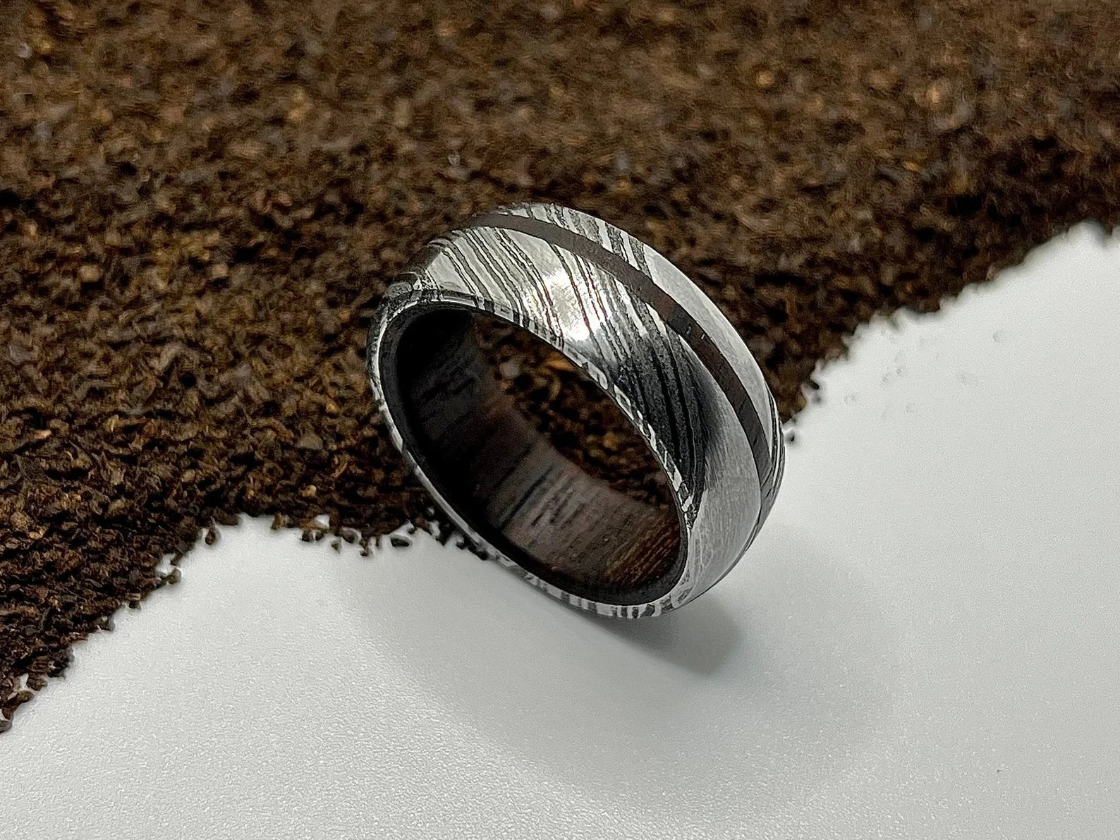 Handcrafted Damascus Steel & Wood Ring | Durable, Unique, Made to Order