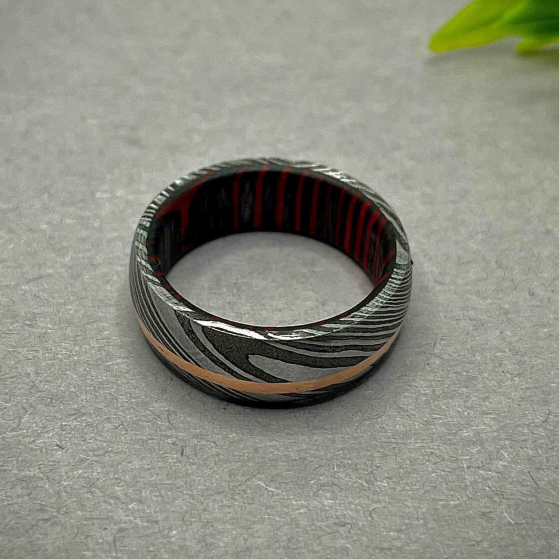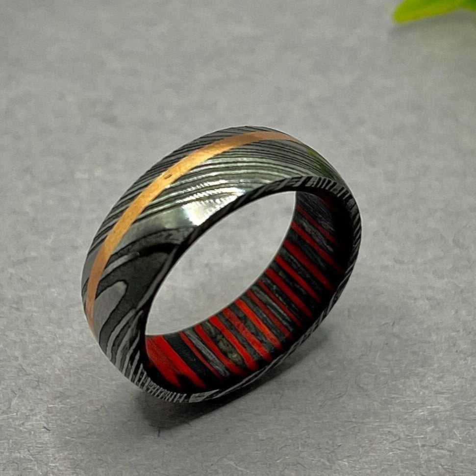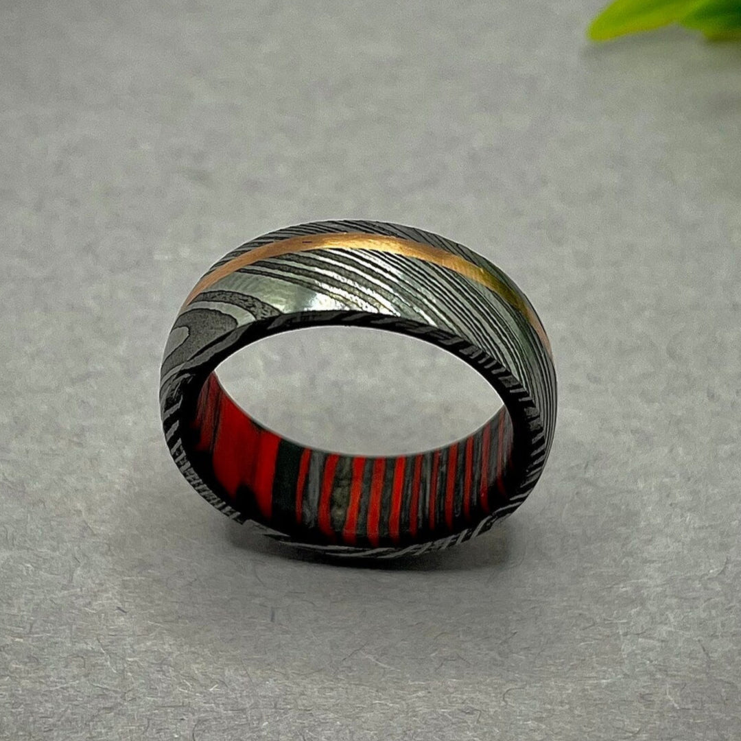 Opt for a wooden sleeve – If you prefer a low-maintenance ring, a wood-lined Damascus band is a great alternative.