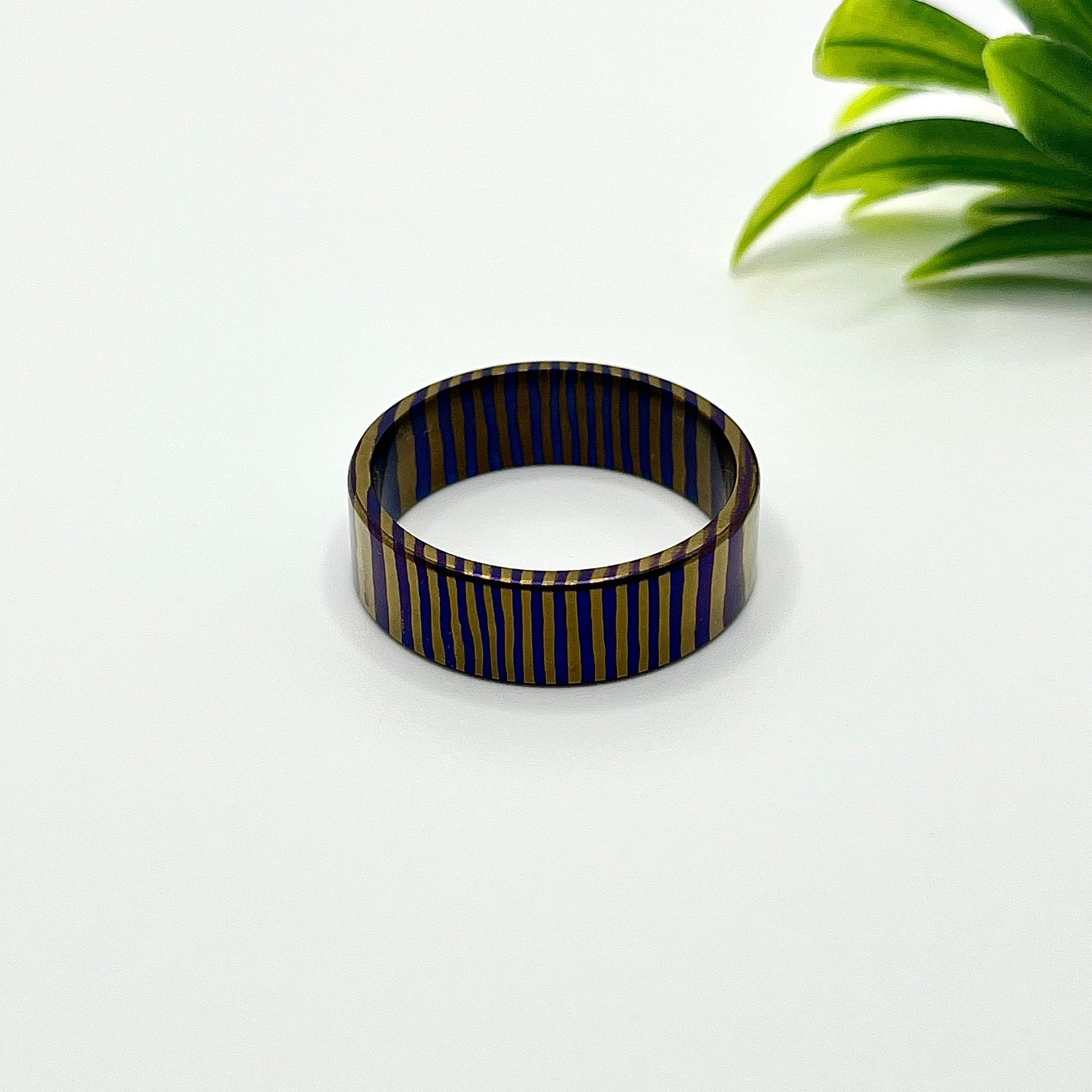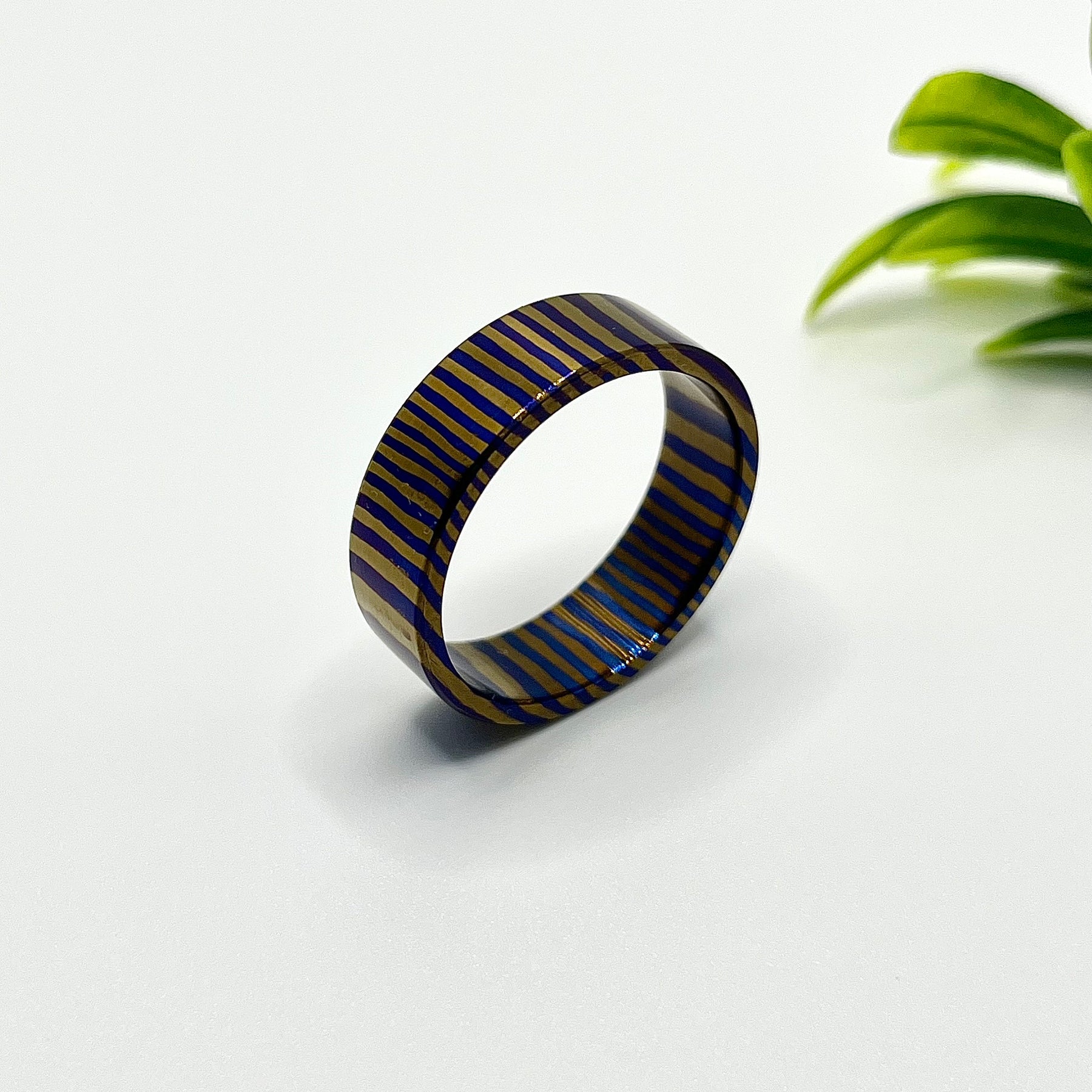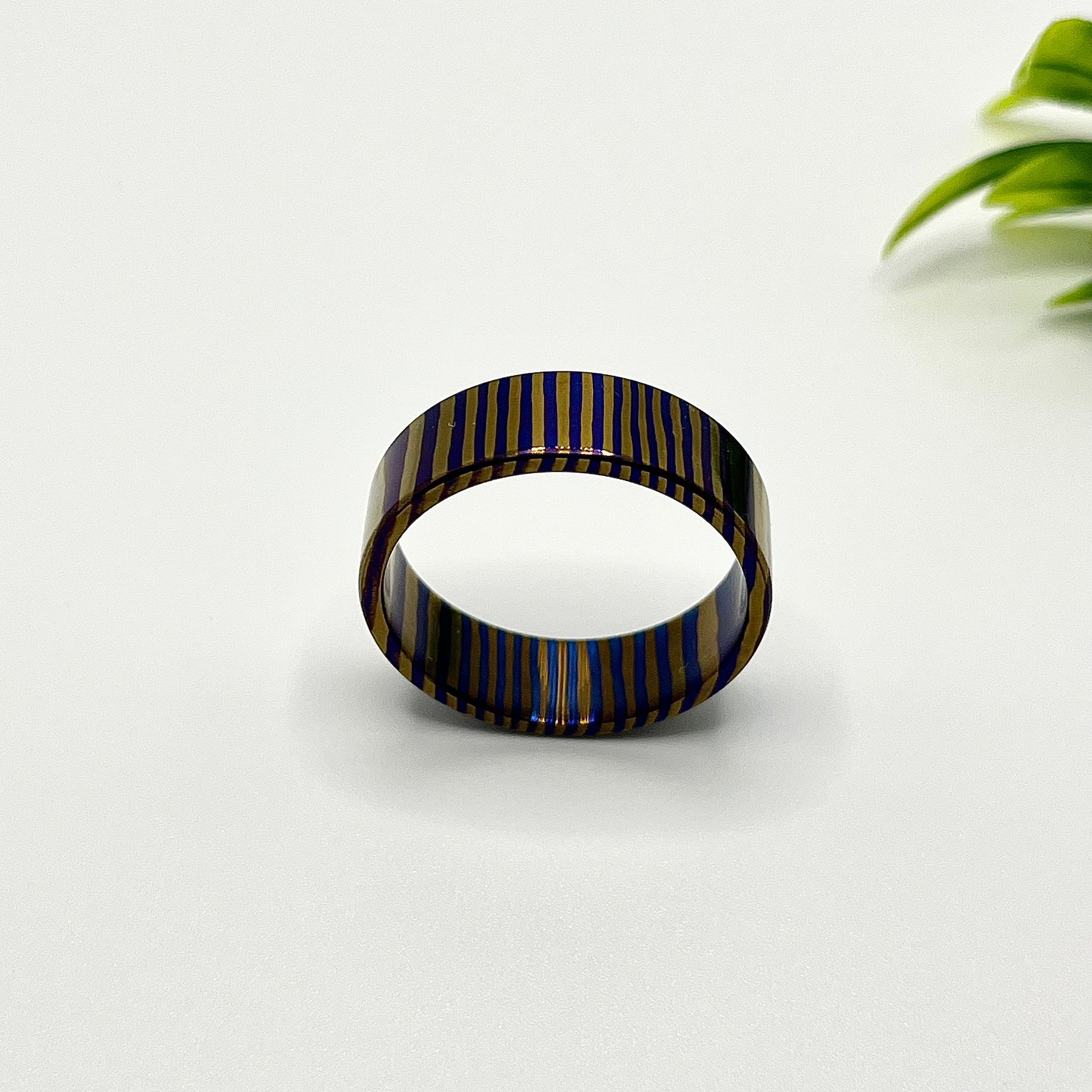Handcrafted with meticulous attention to detail, our Timascus rings are a true testament to the beauty of artistry and craftsmanship. Each ring features a unique pattern formed by skillfully layering titanium and other alloys anodised resulting in a dazzling display of colors and textures that will captivate anyone who beholds it.