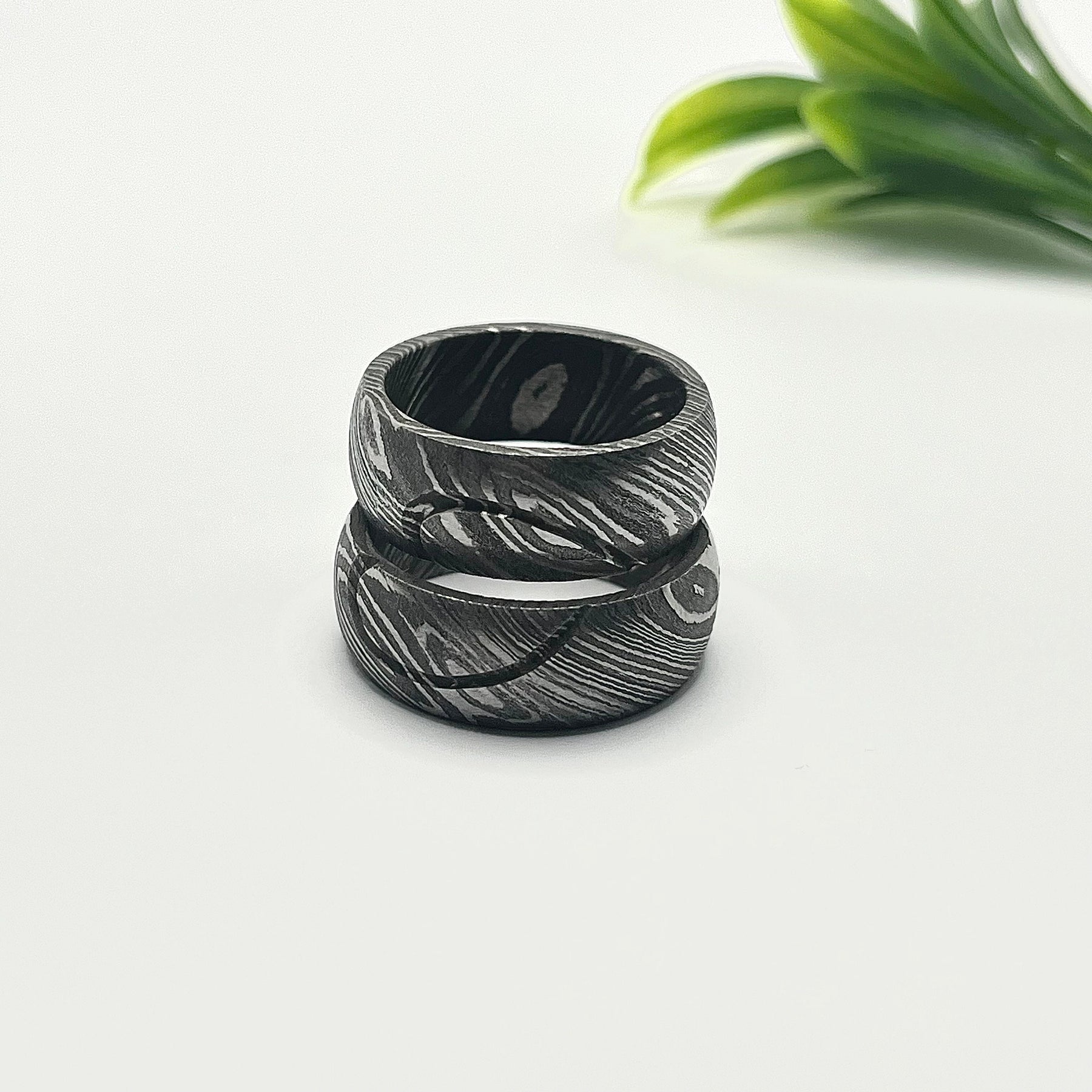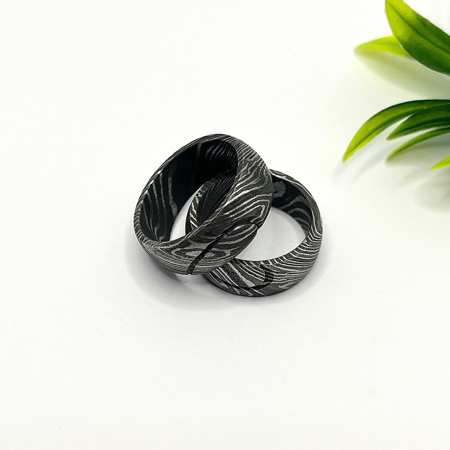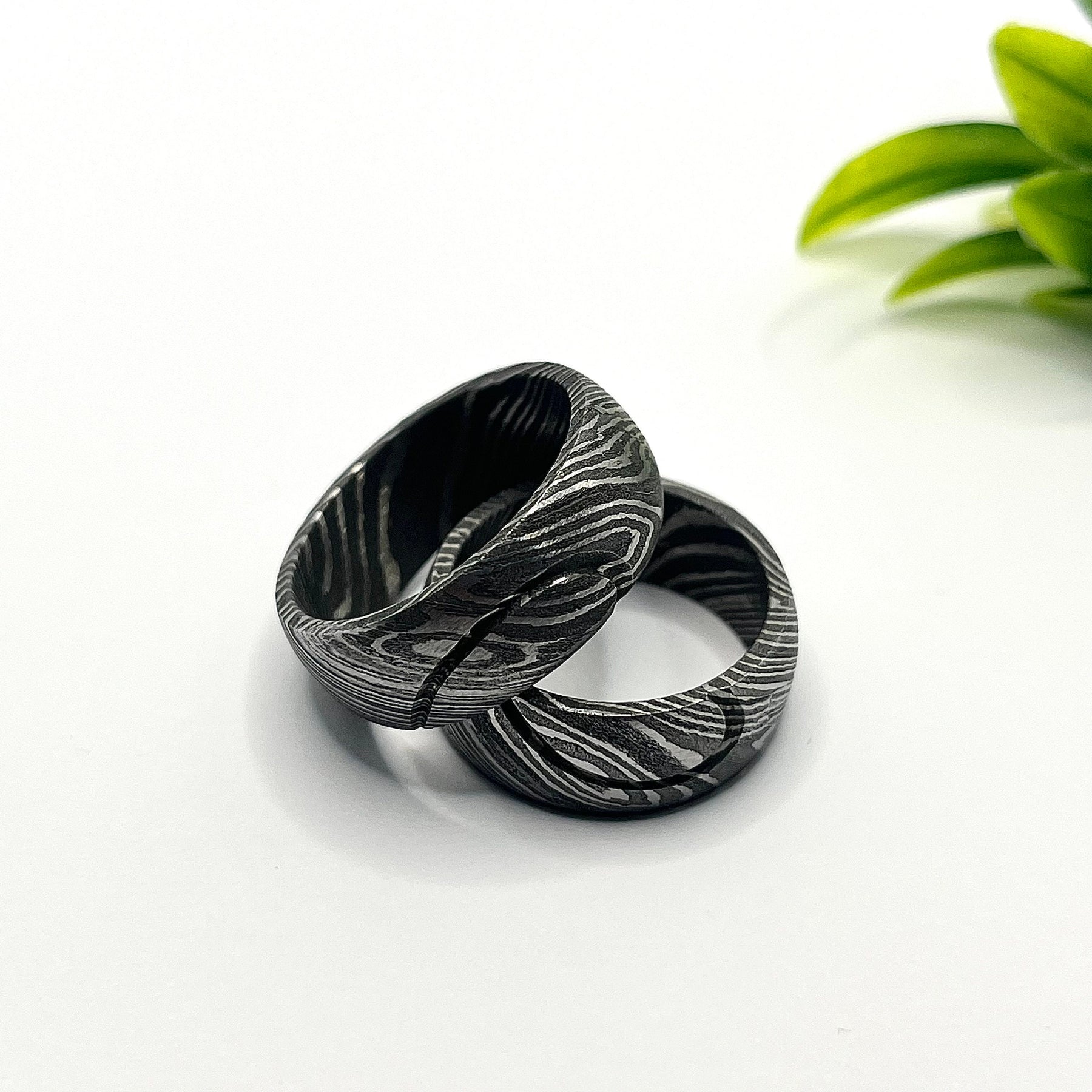 2 x Damascus Steel Rings in a poly bag