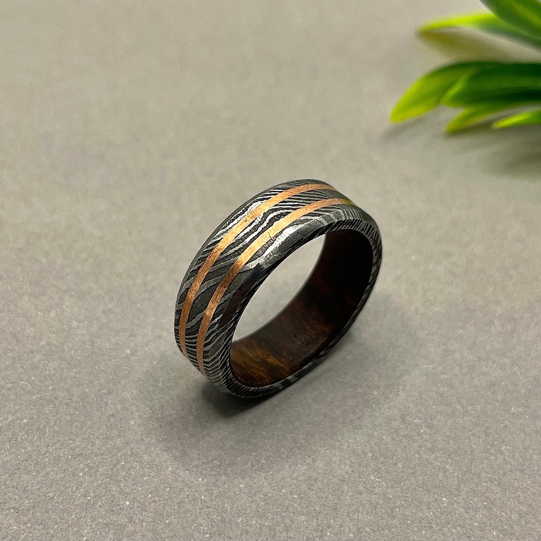 Damascus Ring Damascus Bands For Men Copper Ring For Women Wood Ring Damascus Steel Ring Man Ring Wood Ring Man Wedding Ring Engagement Ring