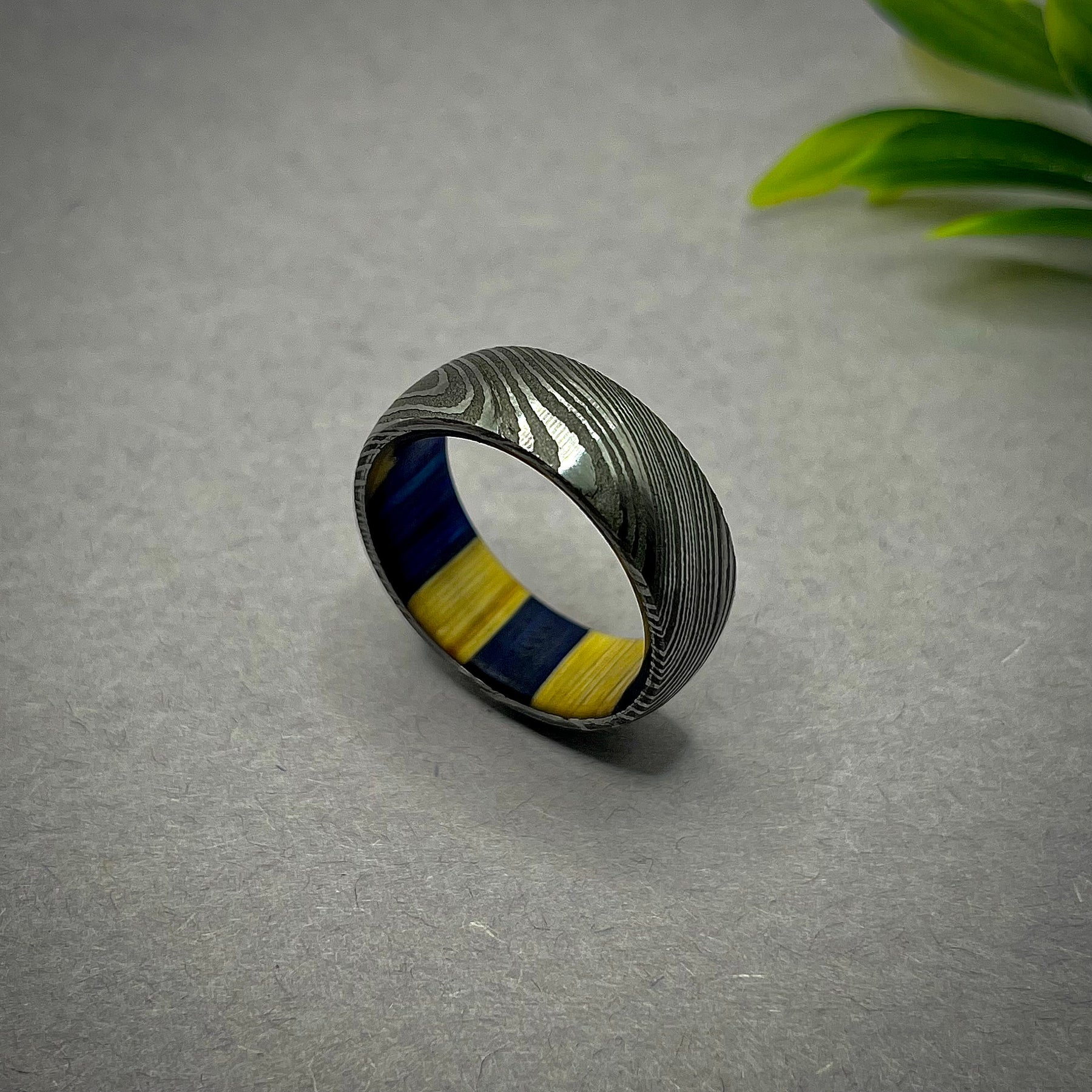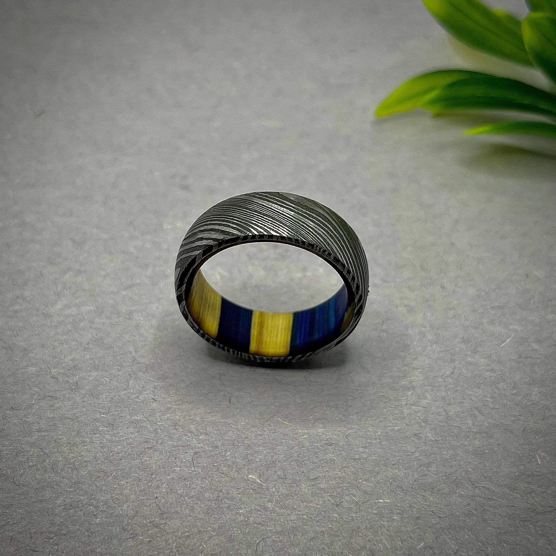 Damascus Ring / Man Ring / Man Wedding Ring / Man Promise Ring Damascus Steel Ring Man Ring Wood Inlay Ring Engagement Ring Wedding Band USA