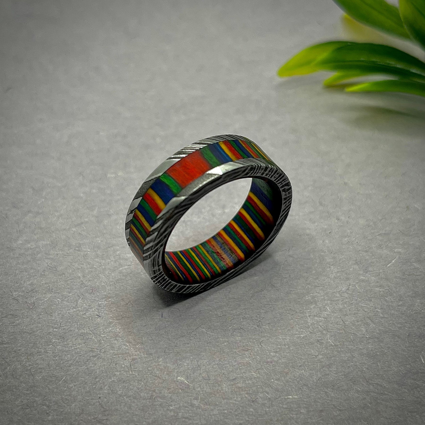 Note: Damascus rings may differ slightly in colour, shade and pattern, because all rings are custom made by hand, and cannot be identical!