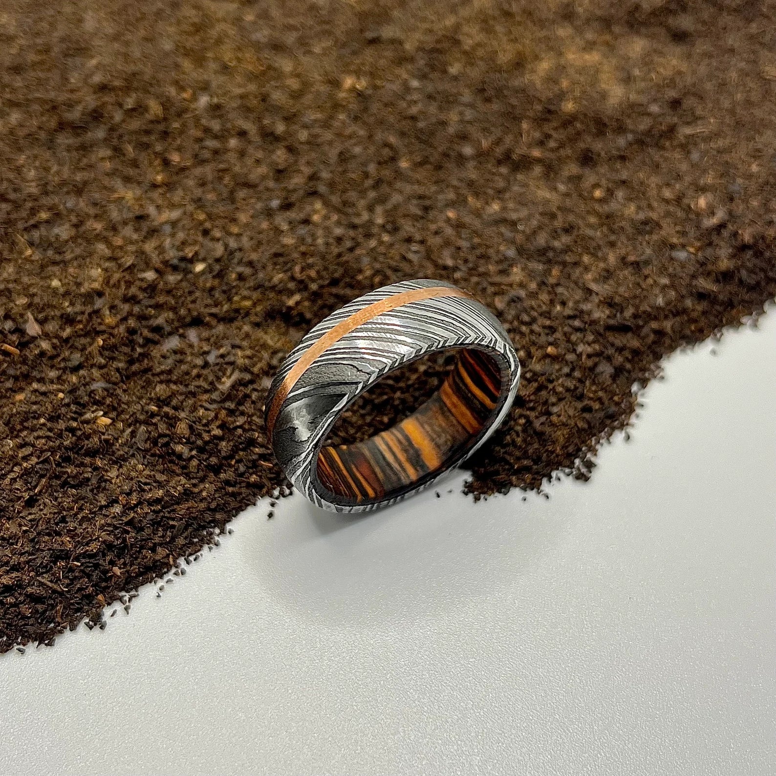 Please be aware that due to the handcrafted nature of Damascus rings, variations in colour, shade, and pattern can be slightly different. Each ring is meticulously made to order, resulting in unique characteristics that make every piece one-of-a-kind. As such, no two rings can be identical, adding to the charm and individuality of each creation.