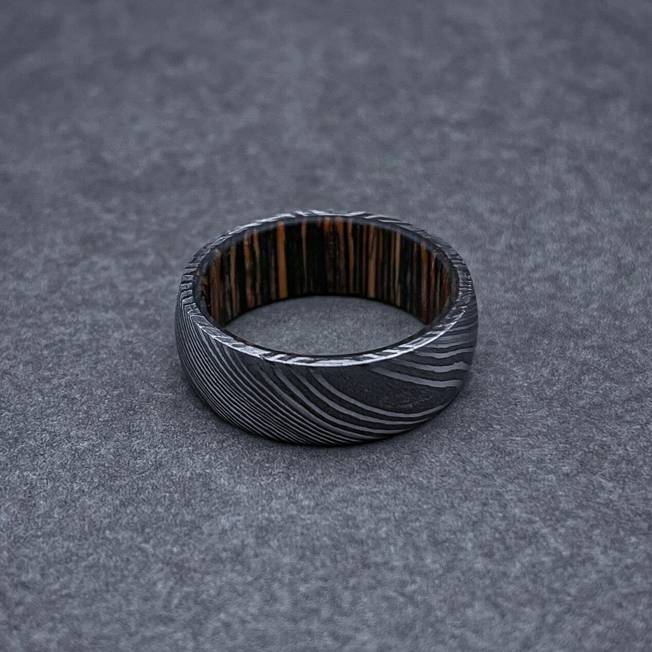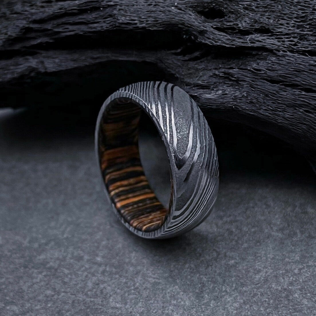 Damascus Steel with Hardwood Sleeve Inlay Band Handmade Damascus Ring Men Wedding Ring Men Engagement Ring Men Band Twist Damascus Steel