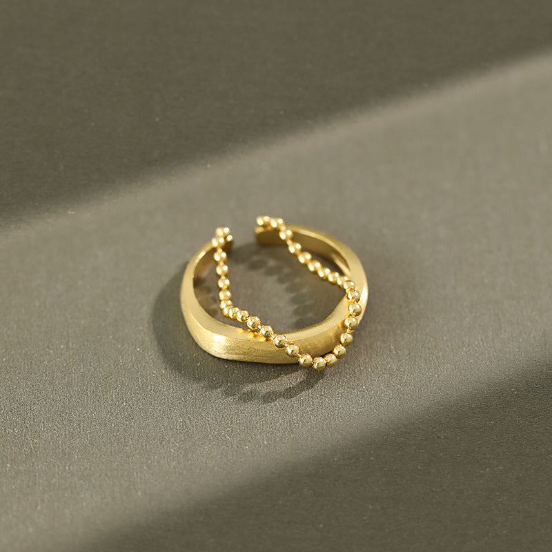Fashion Double Layers Beads Chain 925 Sterling Silver Adjustable Ring
