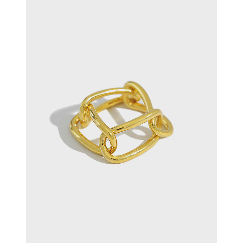 Fashion Hollow Paperclip Chain 925 Sterling Silver Ring