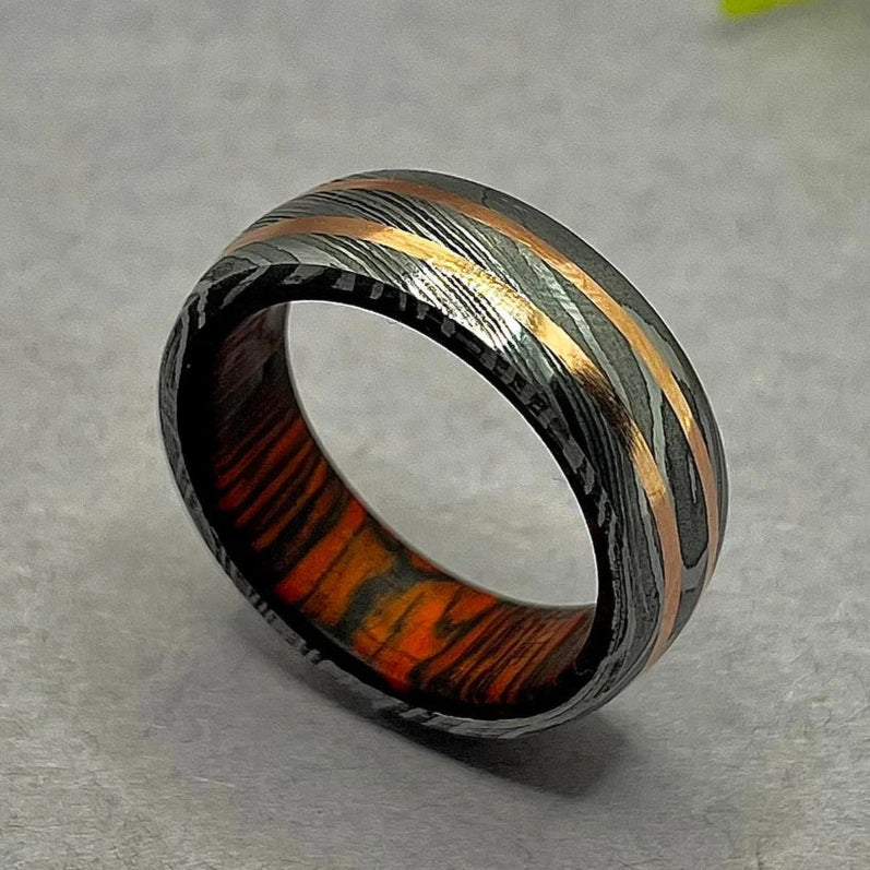 Mens Copper Inlayed Damascus Steel Band Exclusive Men&