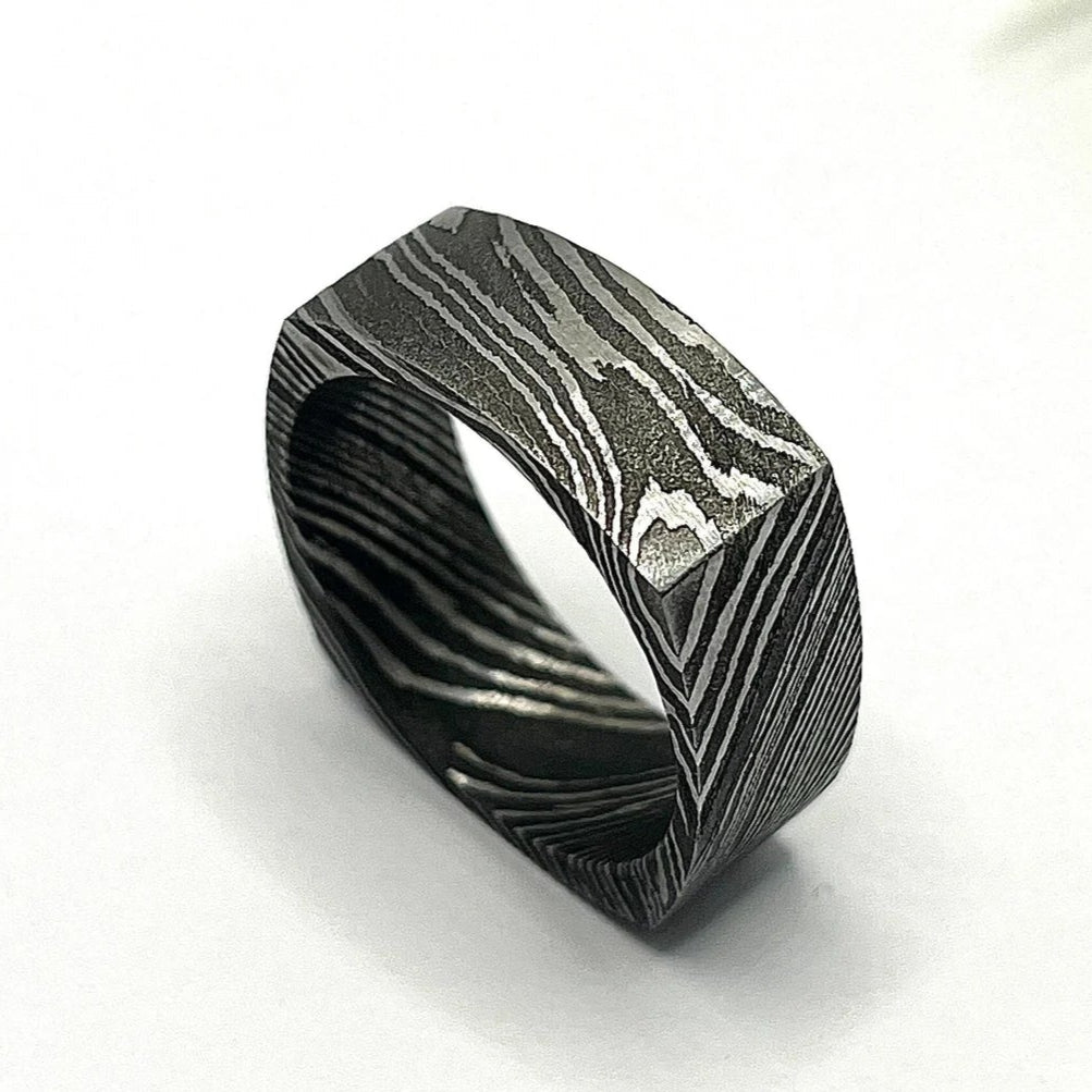 Handmade Damascus Steel Ring | Industrial Hardware Look | Unique Men&