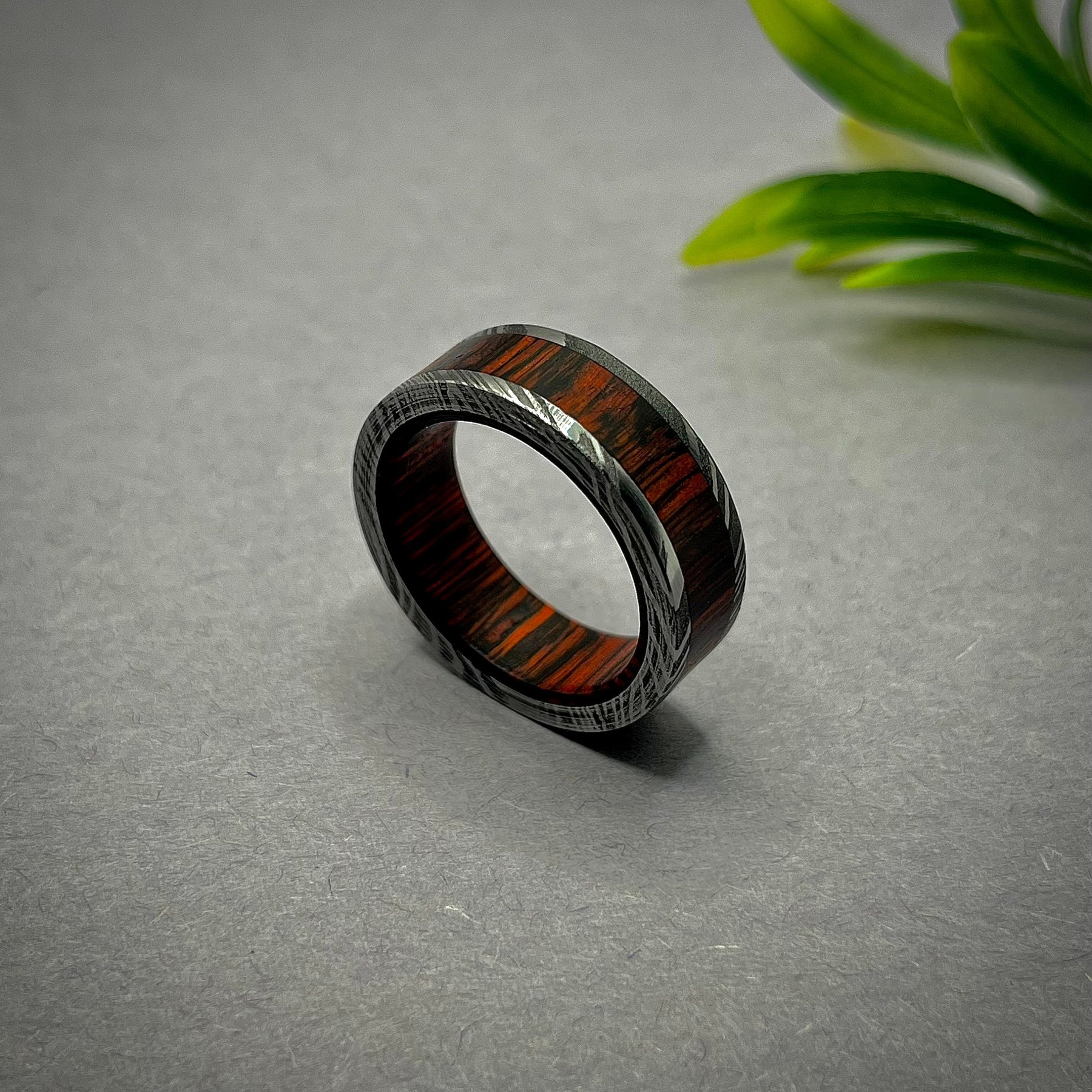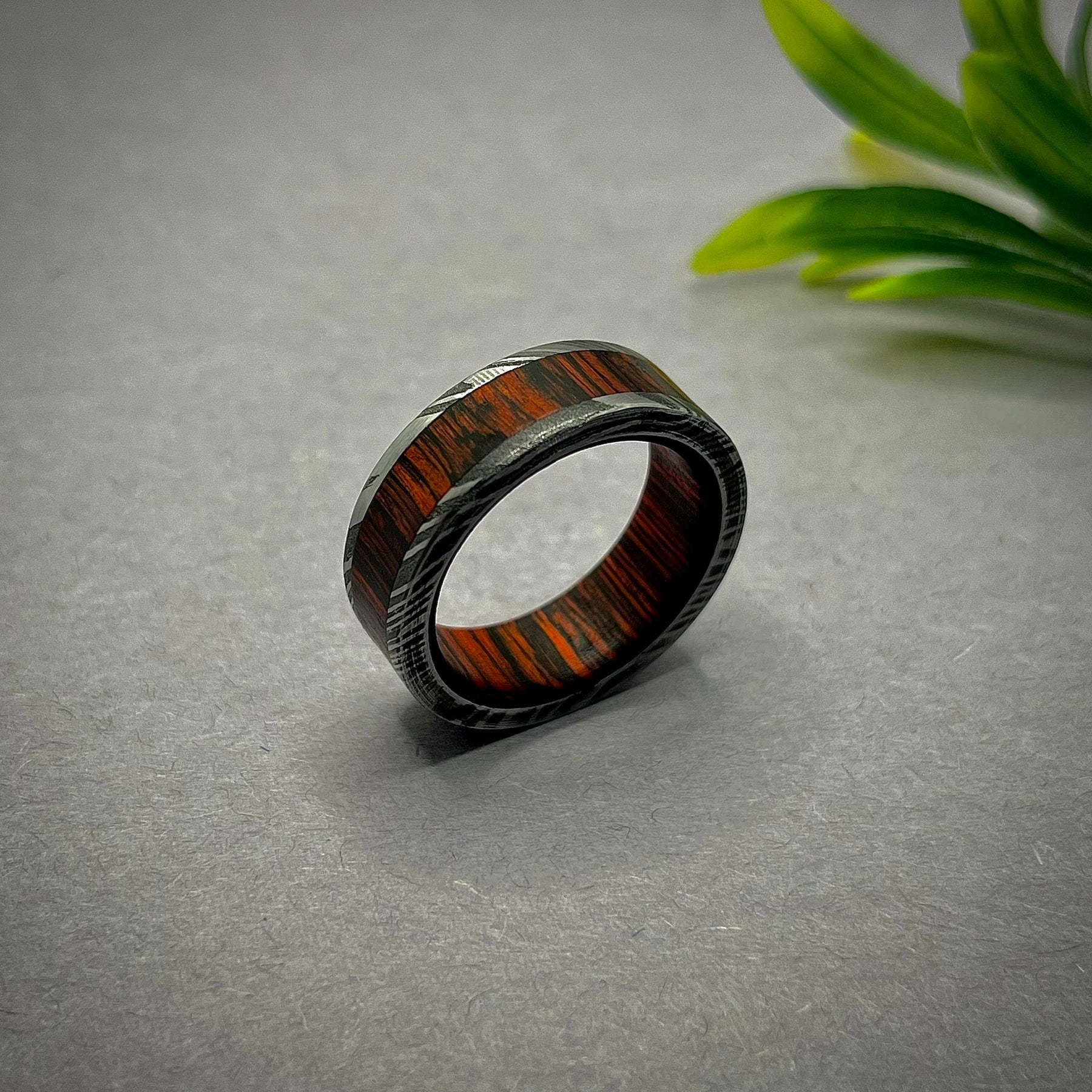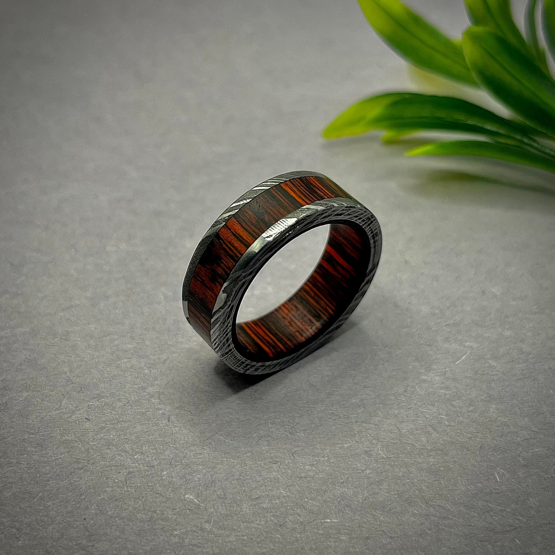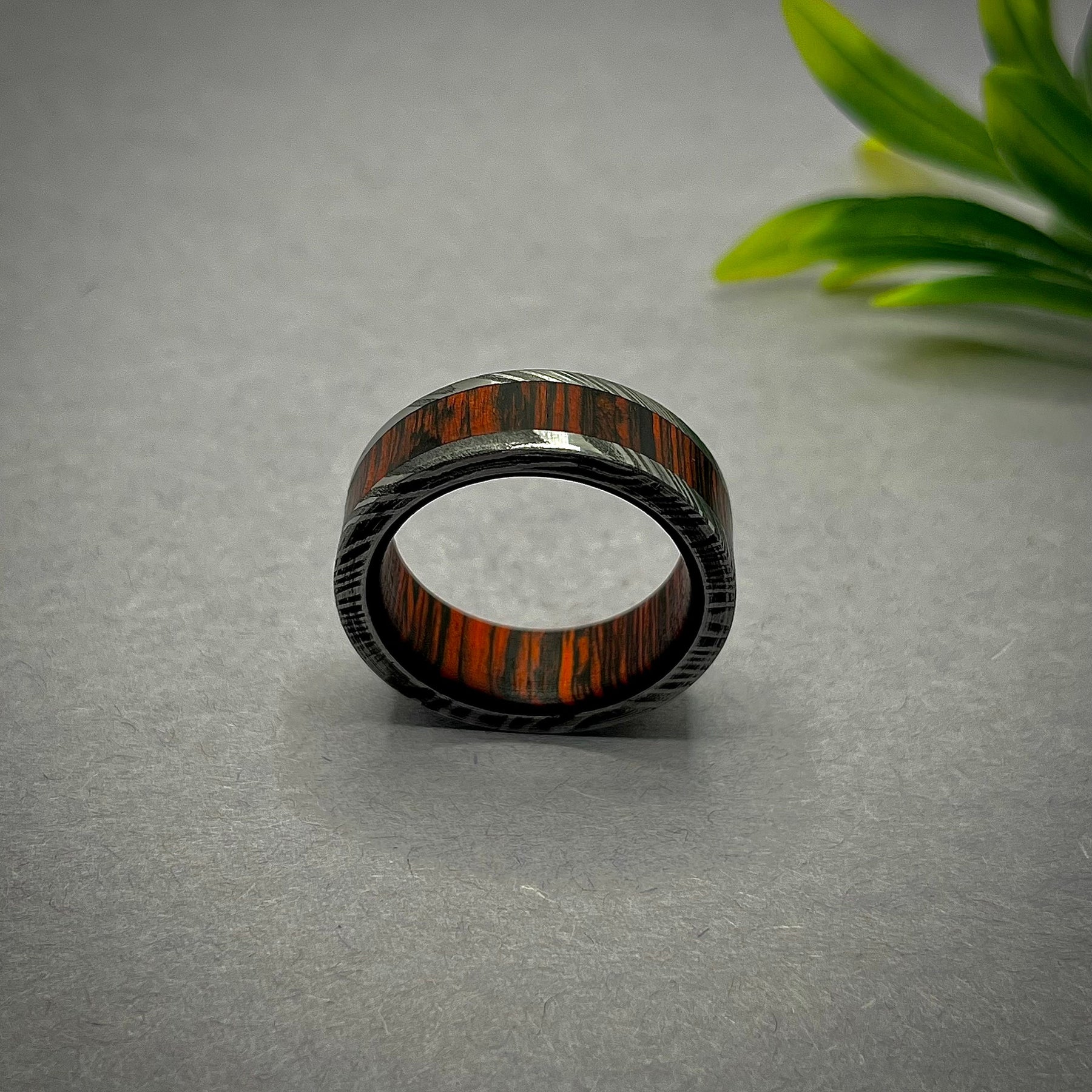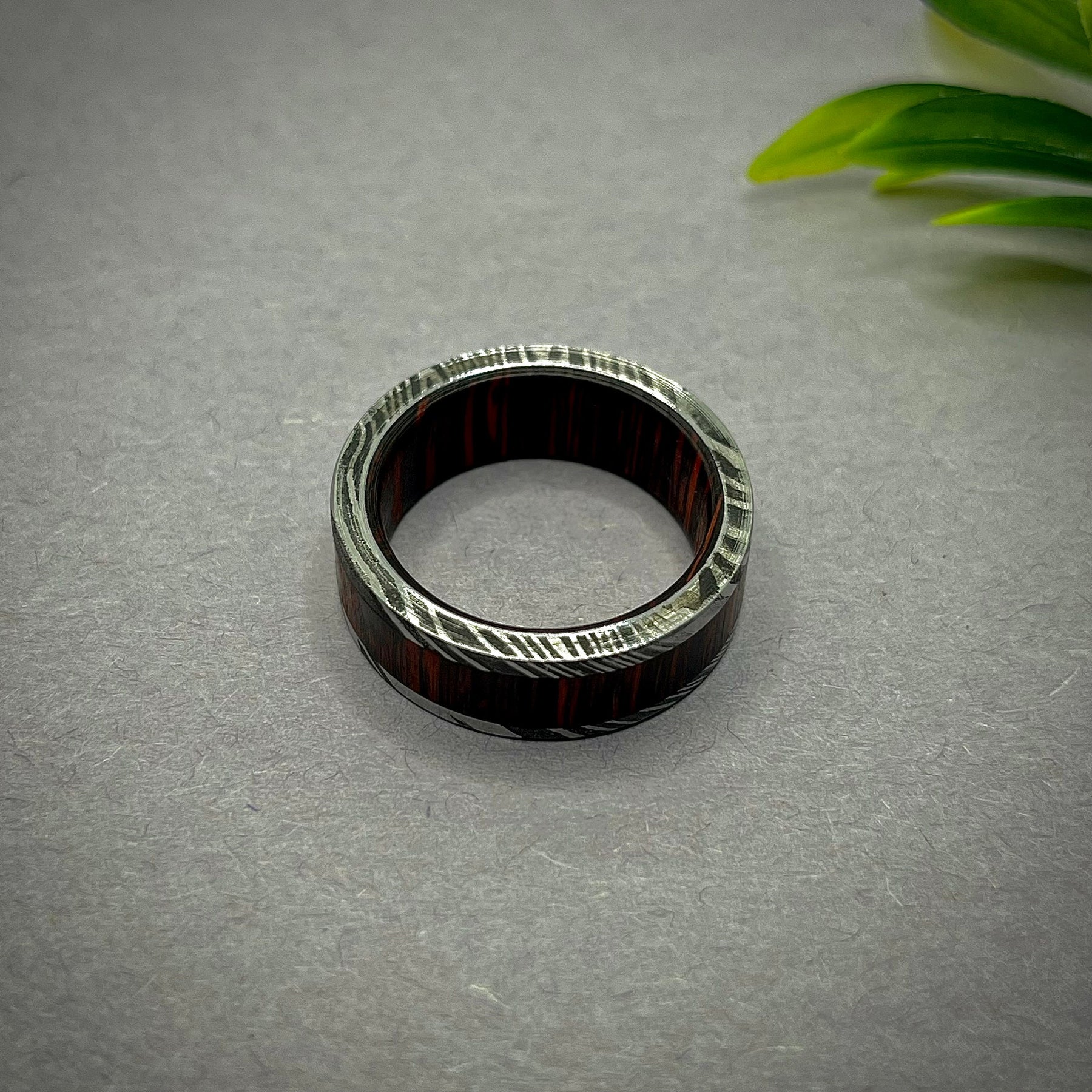 Wood Ring, Mens Damascus Steel Ring, Handmade Jewelry, Mens Wedding Band, Damascus Pattern Wedding Ring, Gift for him, Valentines Gift